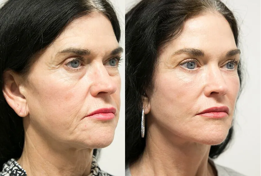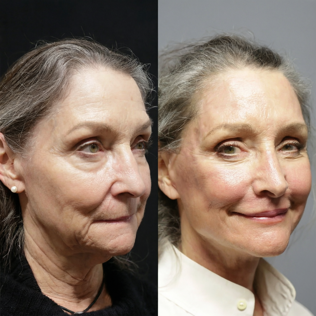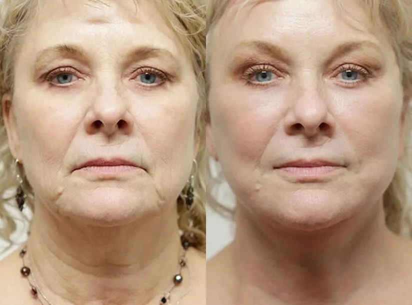 Результат: Заметный лифтинг шеи и подбородка, улучшение качества кожи, безопасность для возраста 65+